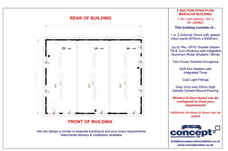 New Executive Modular Building  24' x 20' / 7.3m x 6m / 3 Bay Open Plan
