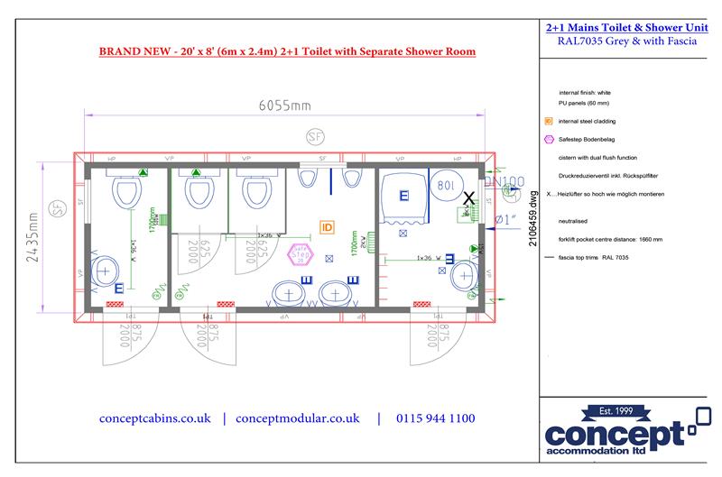 New 20' x 8' / 6m x 2.4m Anti Vandal Toilet & Shower 2 WC's, Single WC, Shower Room